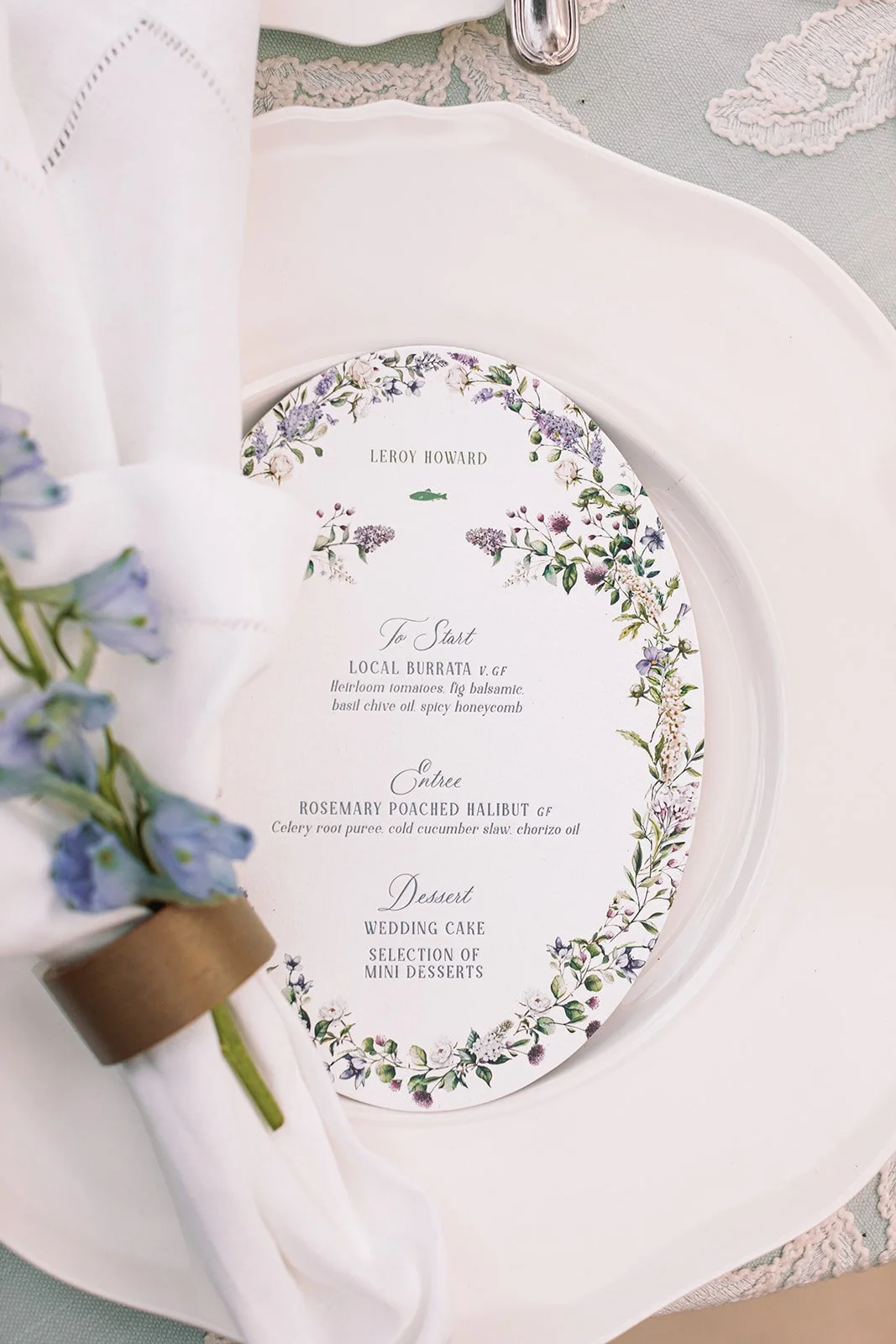 Custom-designed paper details, including the invitation suite, menus, and escort cards, created a cohesive thread throughout the day’s events.