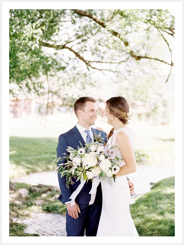 Lauren and Jayson's summer destination wedding at River Bottoms Ranch was a beautifully curated celebration of love and art. The white and dusty blue color palette perfectly complemented the natural beauty of the surroundings. Guests enjoyed an alfresco dinner in the field with stunning views of Mount Timpanogos, followed by a lively indoor reception with a live band. A unique and memorable touch was the live artist capturing the ceremony scene as it unfolded, adding a personal and artistic element to the day.